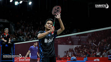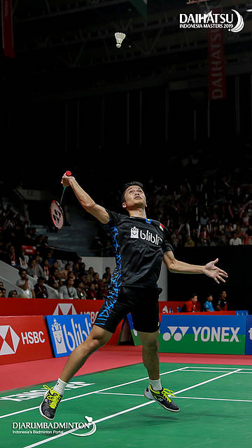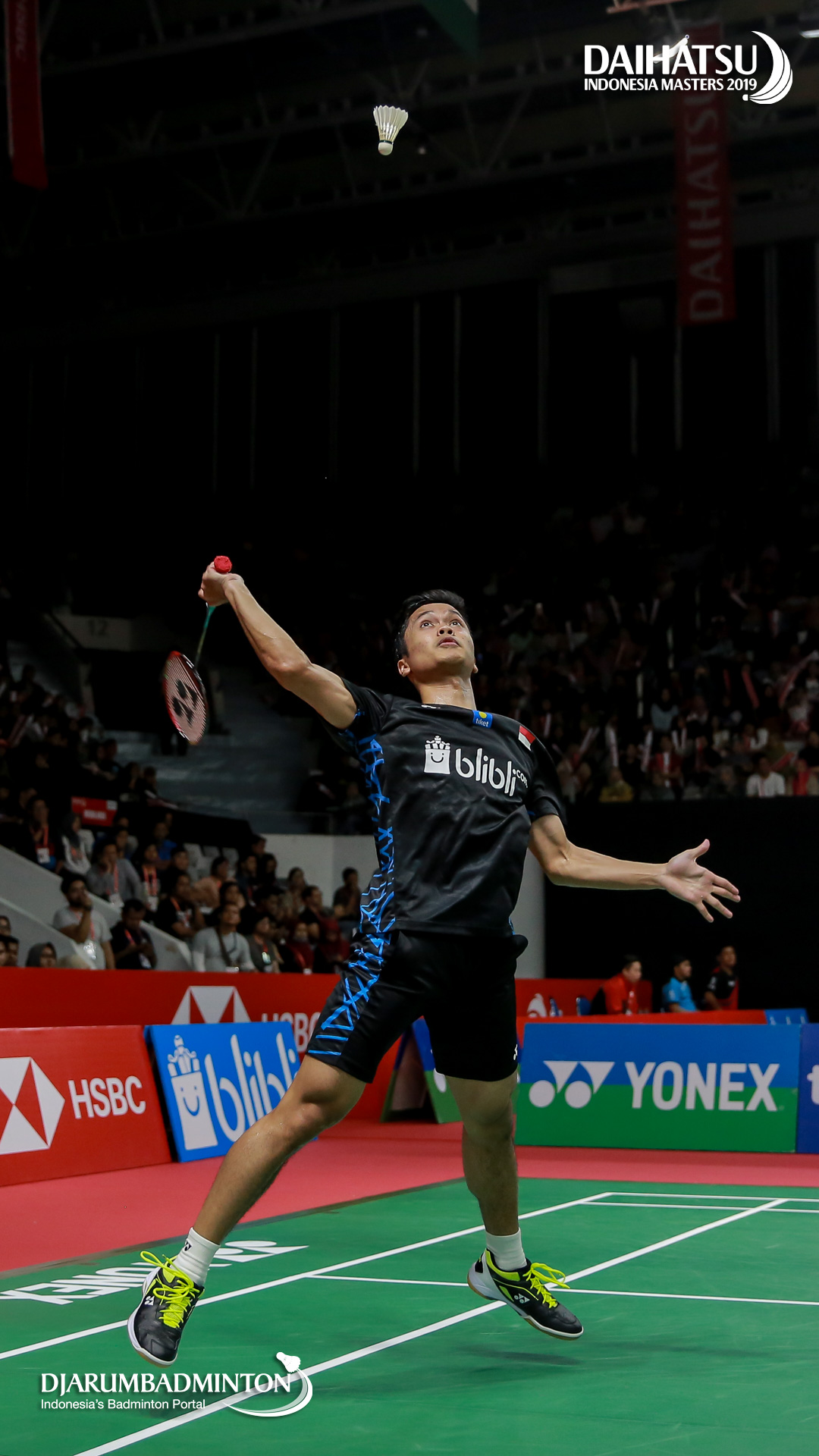 Anthony Sinisuka GINTING (Indonesia) bersiap melepaskan serangan