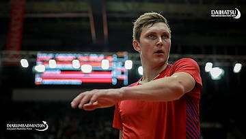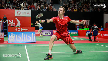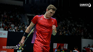 Viktor AXELSEN (Denmark) menyambut serangan