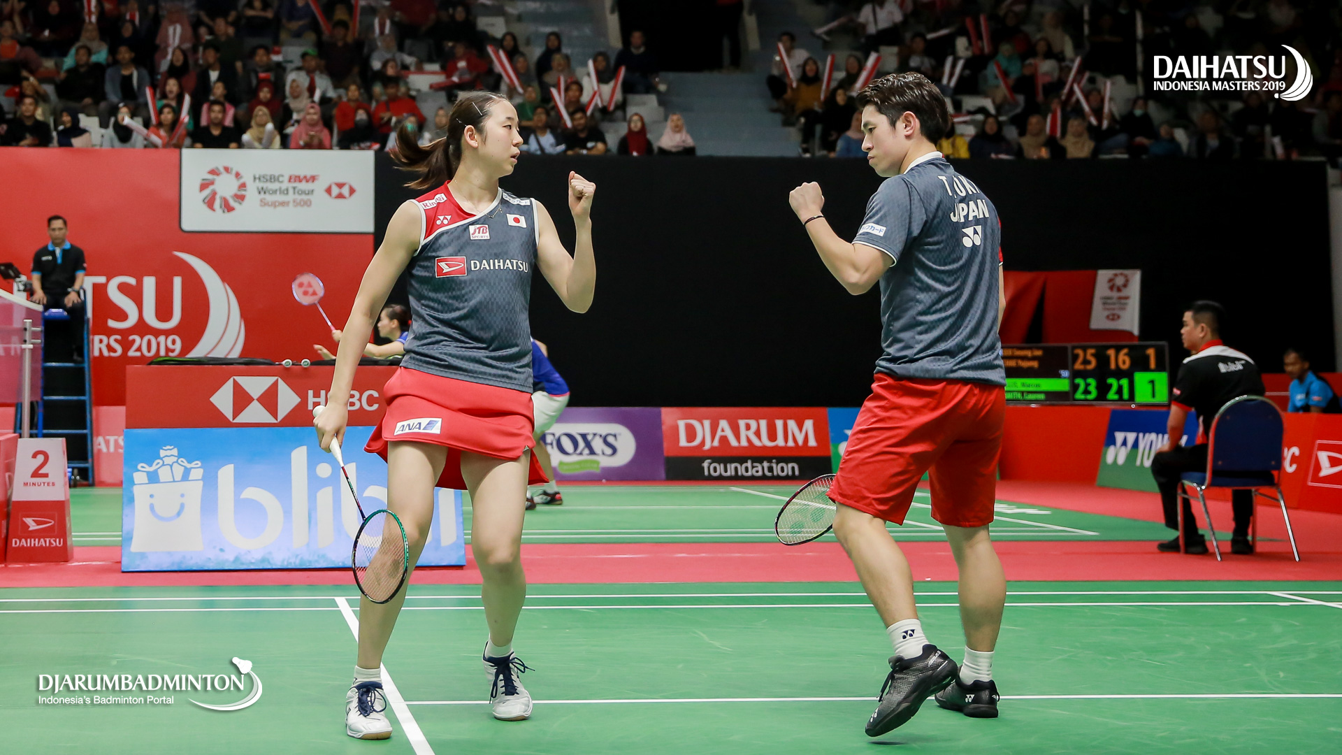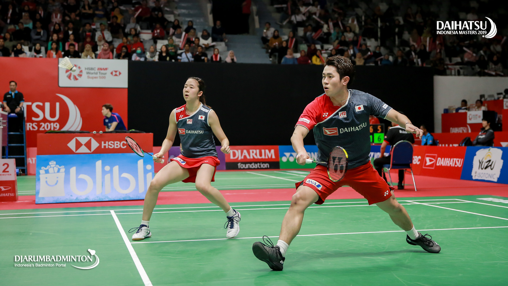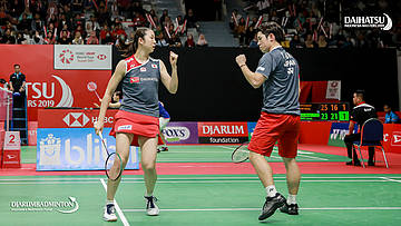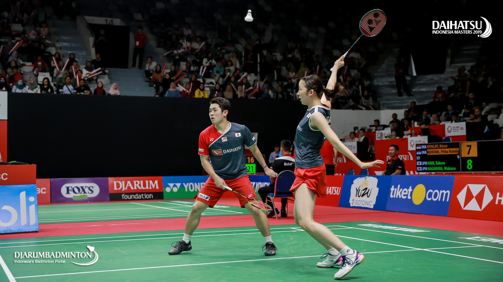 Takuro HOKI/Wakana NAGAHARA (Japan) bersiap menyambut pengembalian