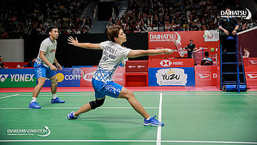 Takuro HOKI/Wakana NAGAHARA (Japan) gagal mengembalikan serangan