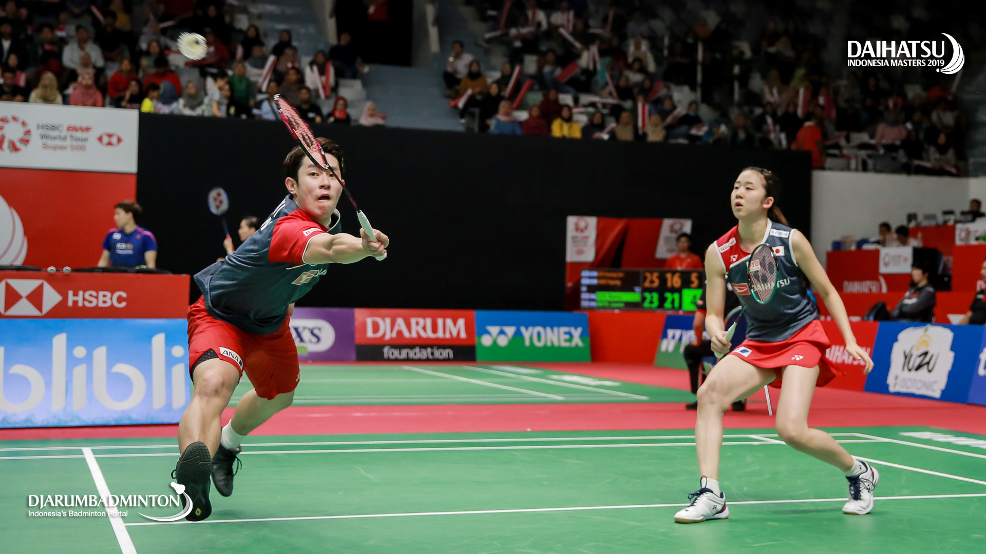 Takuro HOKI/Wakana NAGAHARA (Japan) berusaha menggapai pengembalian