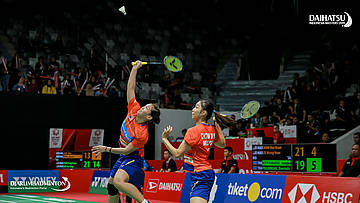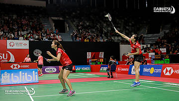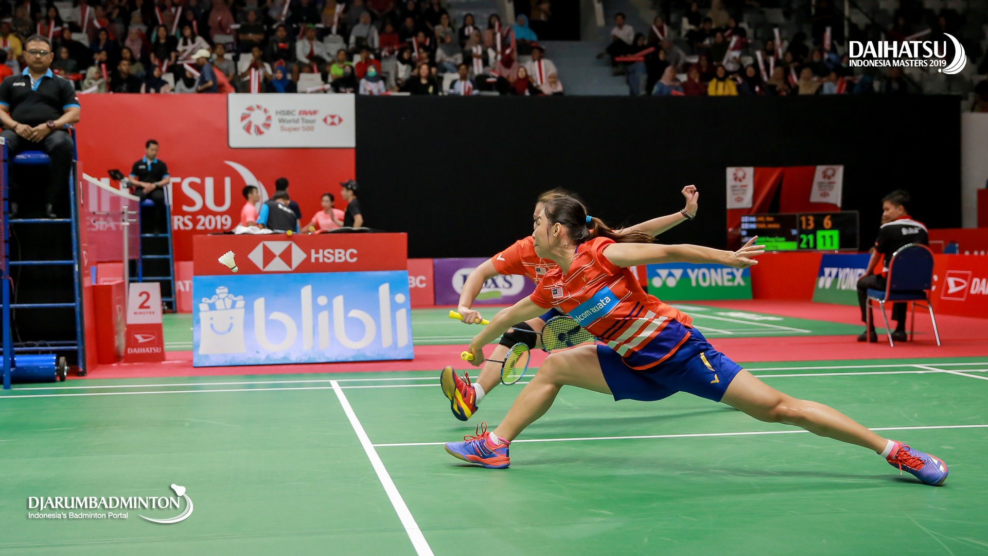 Jongkolphan KITITHARAKUL/Rawinda PRAJONGJAI (Thailand) melepaskan serangan