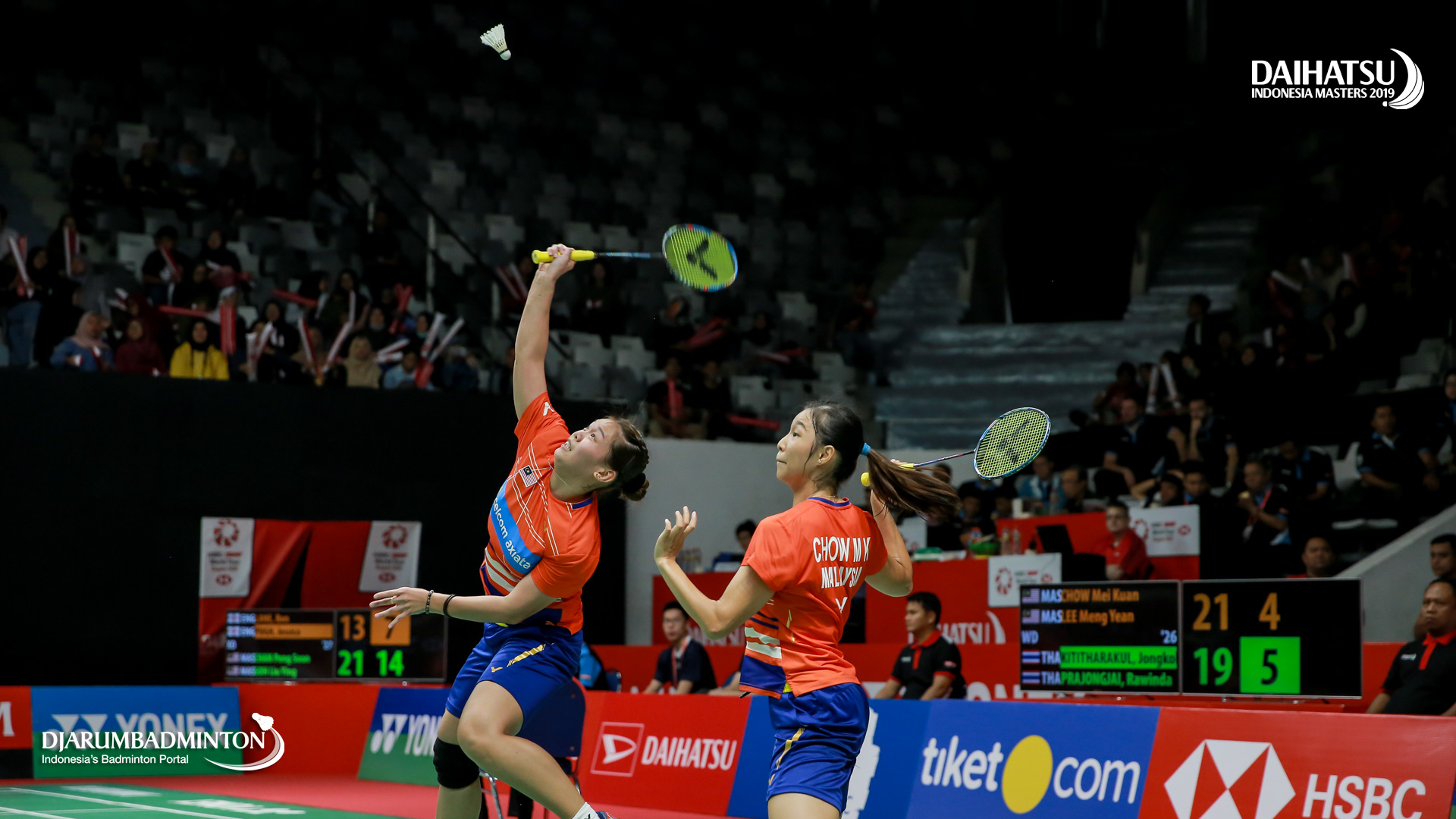 CHOW Mei Kuan/LEE Meng Yean (Malaysia) berusaha menggapai serangan