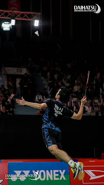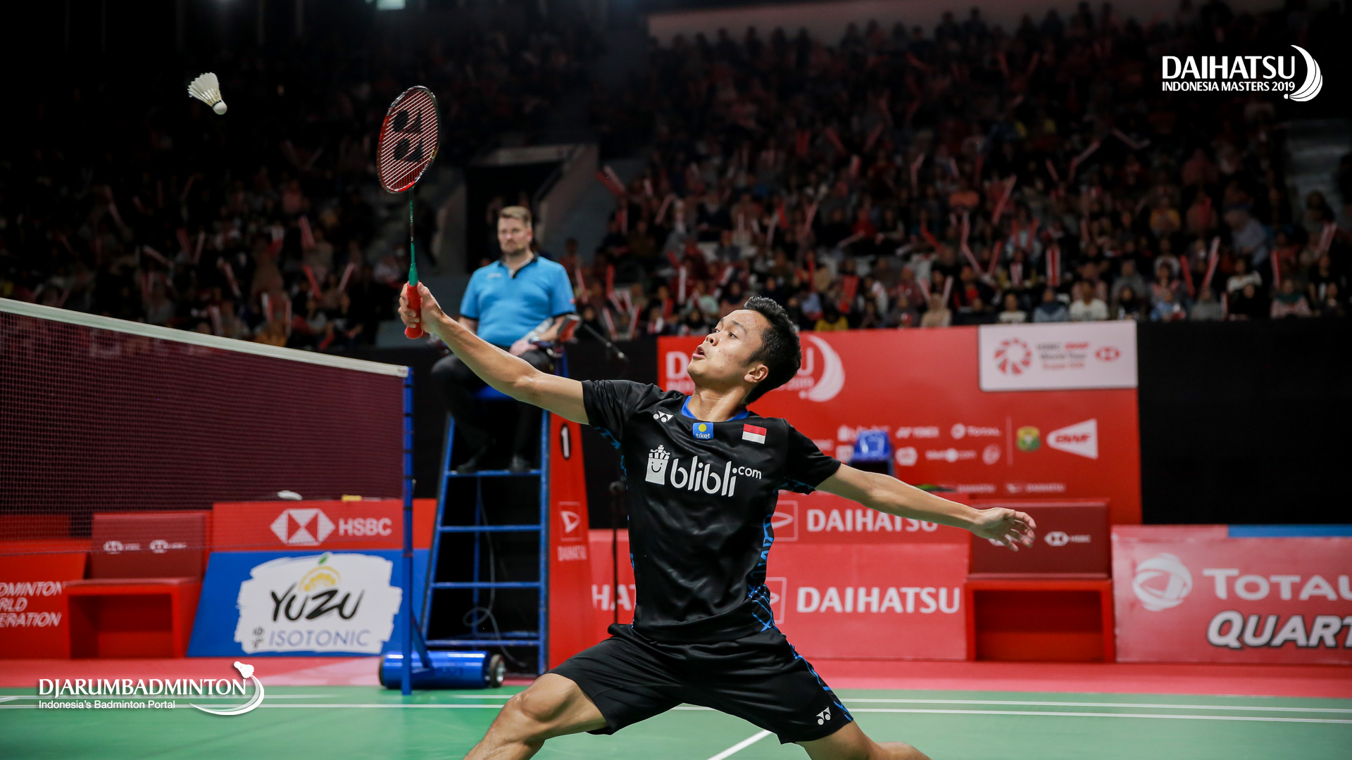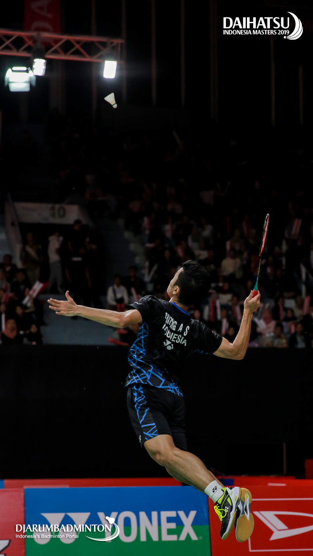 Anthony Sinisuka GINTING (Indonesia) bersiap melepaskan smash