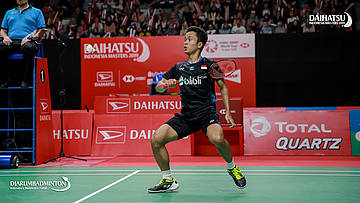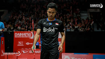 Anthony Sinisuka GINTING (Indonesia) bersiap menyambut shuttlecock