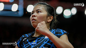 Apriyani RAHAYU (Indonesia) melakukan peregangan