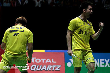 Ekspresi Kevin Sanjaya Sukamuljo/Marcus Fernaldi Gideon (Indonesia)