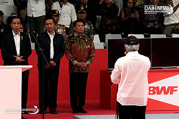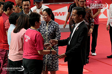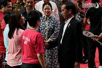 Presiden Republik Indonesia, Joko Widodo Memberikan Raket Kepada Legenda Bulutangkis Indonesia