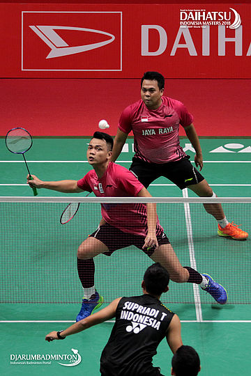 Lukhi Apri Nugroho/Tedi Supriadi (Indonesia) Mengembalikan Shuttlecock