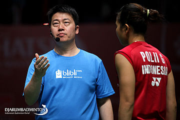 Apriyani Rahayu (Indonesia) Memberikan Sandi Taktik Penyerangan