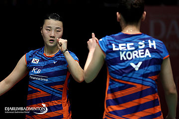 Lee So Hee/Shin Seung Chan (Korea) Mengembalikan Shuttlecock