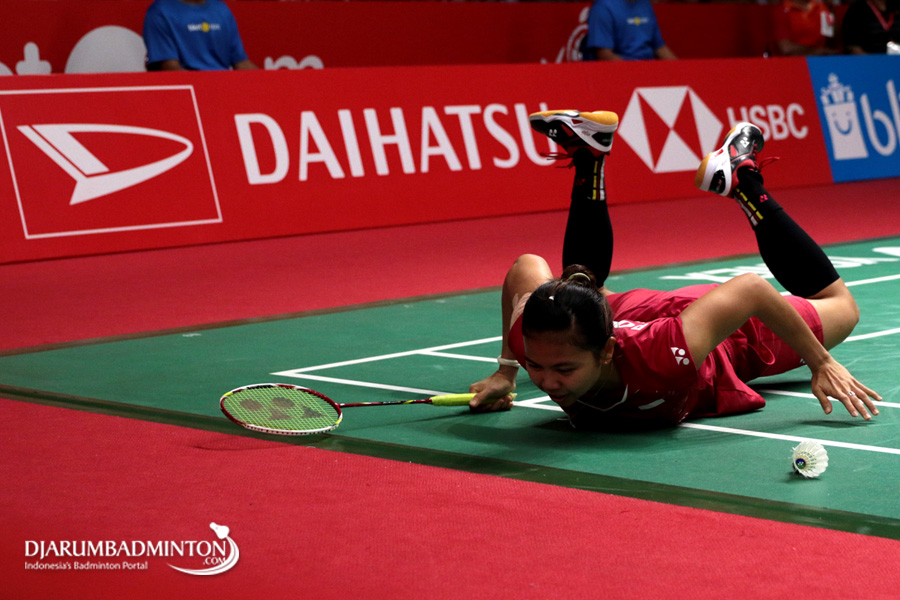 Greysia Polii (Indonesia) Terjatuh Saat Berusaha Menggapai Pengembalian