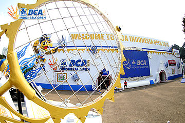 Dekorasi BCA Indonesia Open Super Series Premiere 2014 dengan ornamen wayang
