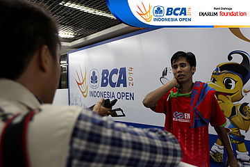 Alamsyah Yunus (Indonesia) sedang diwawancara seusai bertanding