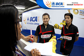 Jenna Gozali/Komala Dewi (Indonesia) saat diwawancarai seusai bertanding