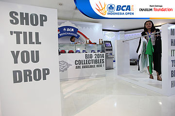 Salah satu booth merchandise BCA pada gelaran BCA Indonesia Open Super Series Premier 2014