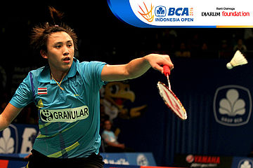 Tanongsak Saensomboonsuk (Thailand) bersiap menyambut pengembalian dari Chen Long (China)