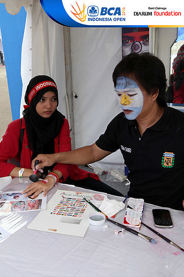 Salah satu suporter Indonesia di booth face painting