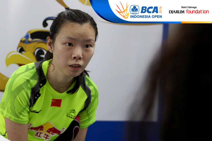 Li Xuerui (China) Saat diwawancarai seusai bertanding