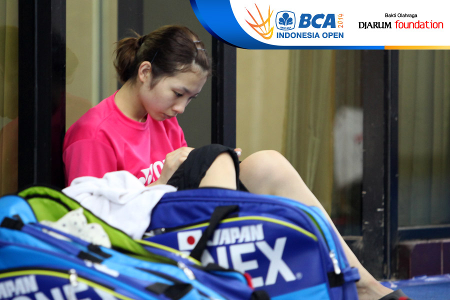 Misaki Matsutomo (Jepang) menuju player lounge seusai bertanding