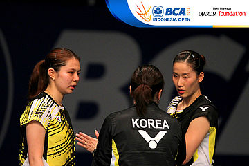 Jang Ye Na/So Young Kim (Korea Selatan) saat mendapatkan pengarahan dari pelatihnya