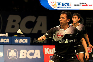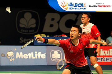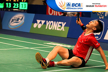 Gaya Markis Kido (Indonesia) saat kehilangan poin
