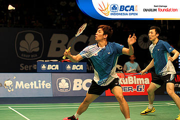 Tan Boon Heong/Tan Wee Kiong (Malaysia) berhasil menghadang serangan yang dilepaskan Lee Yong Dae/Yoo Yeon Seong (Korea Selatan)