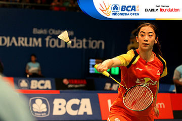 Wang Shixian (China) berusaha menggapai pengembalian dari Busanan Ongbumrungpan (Thailand)