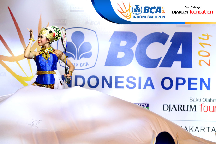 Salah satu penari yang memeriahkan semifinal BCA Indonesia Open Super Series Premiere 2014, di Istora Senayan