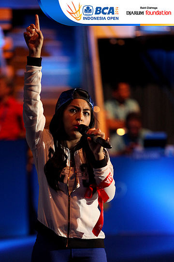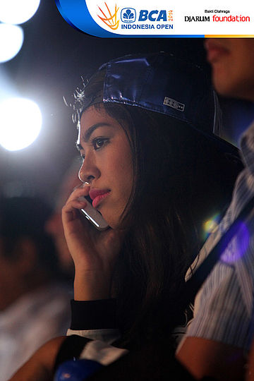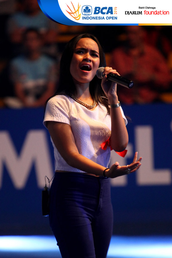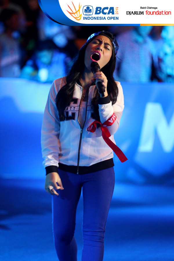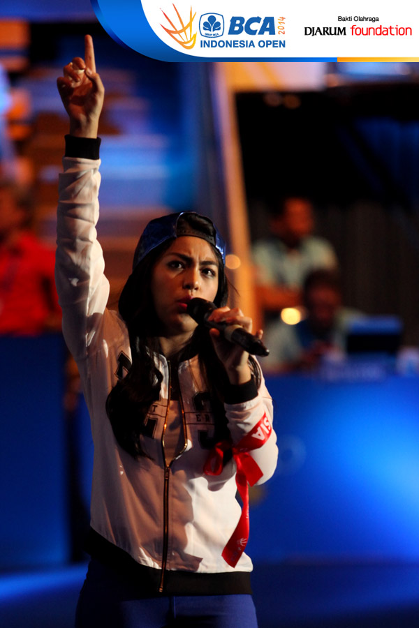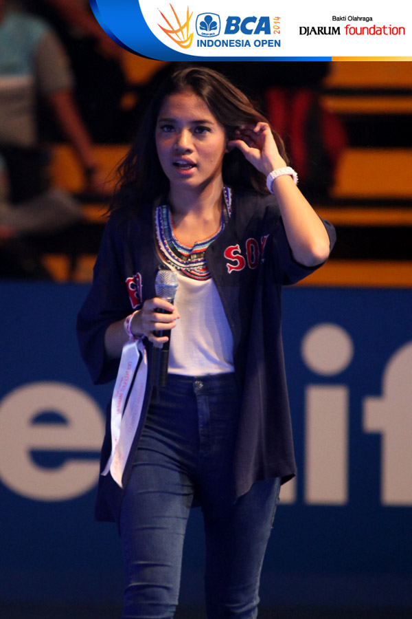 Audrey saat menghibur ribuan penonton pada gelaran BCA Indonesia Open Super Series Premier 2014