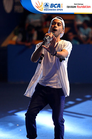 Gamaliel saat menghibur ribuan penonton pada gelaran BCA Indonesia Open Super Series Premier 2014