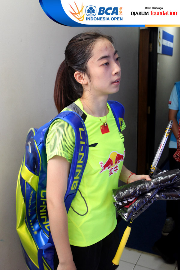 Wang Shixian (China) Bersiap memasuki lapangan pertandingan