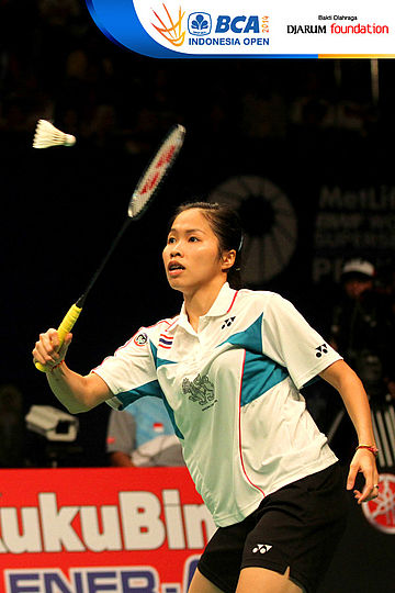 Ratchanok Intanon (Thailand) menghadang pengembalian dari Li Xuerui (China)