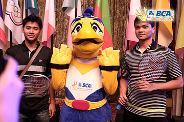 Maskot BIO pada gelaran Press Conference BCA Indonesia Open Super Series Premier 2015