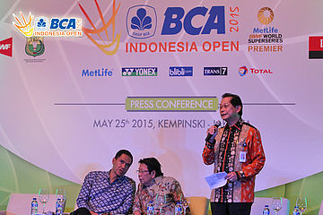 MC Steny Agustaf pada gelaran Press Conference BCA Indonesia Open Super Series Premier 2015