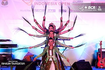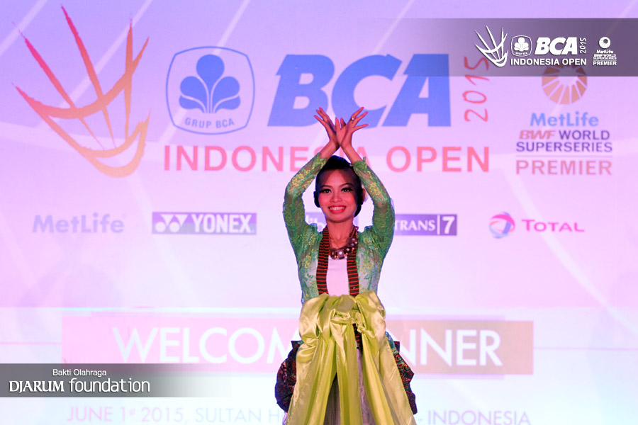 Salah satu penari saat tampil menghibur para tamu undangan di Welcome Dinner BCA Indonesia Open Super Series Premier 2015.