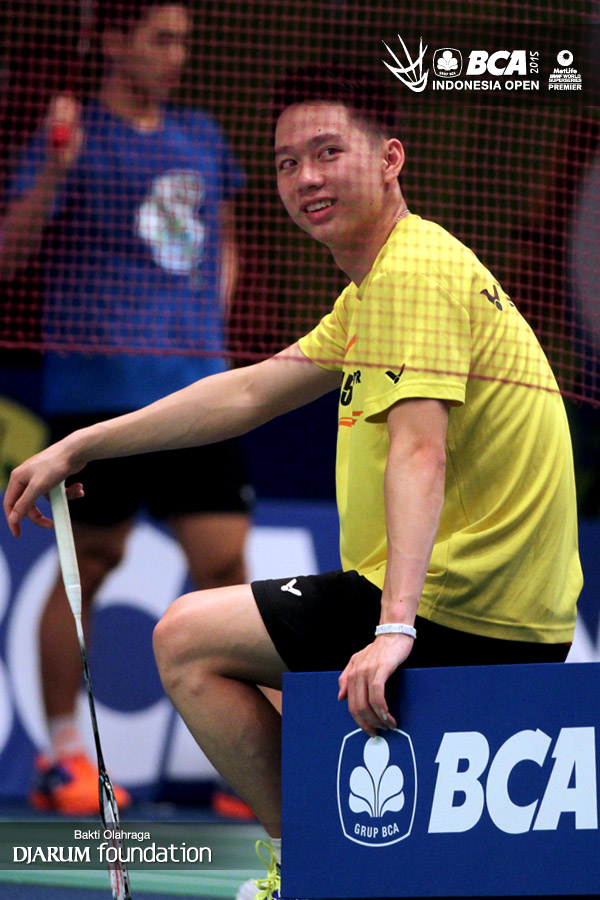 Kevin Sanjaya (Indonesia) saat menunggu giliran berlatih.