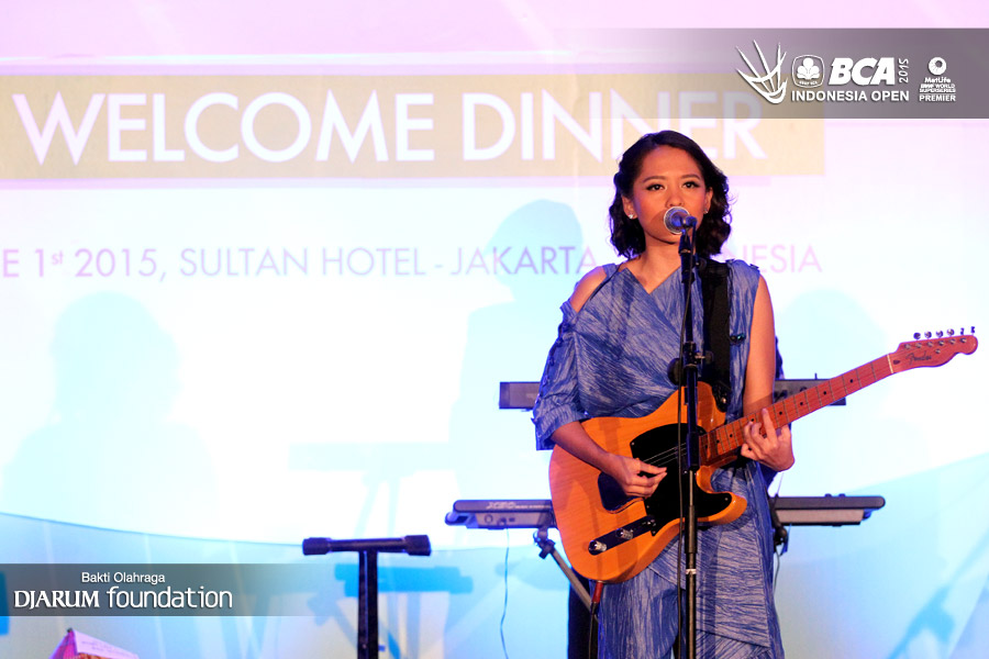 Lala Karmela saat menghibur para tamu undangan di Welcome Dinner BCA Indonesia Open Super Series Premier 2015.
