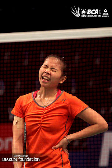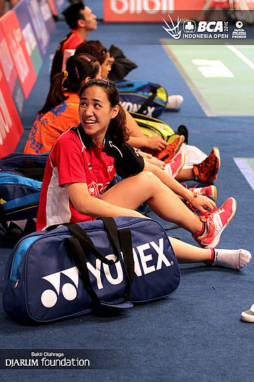 Gloria Emanuelle Widjaja (Indonesia) saat menunggu giliran berlatih.