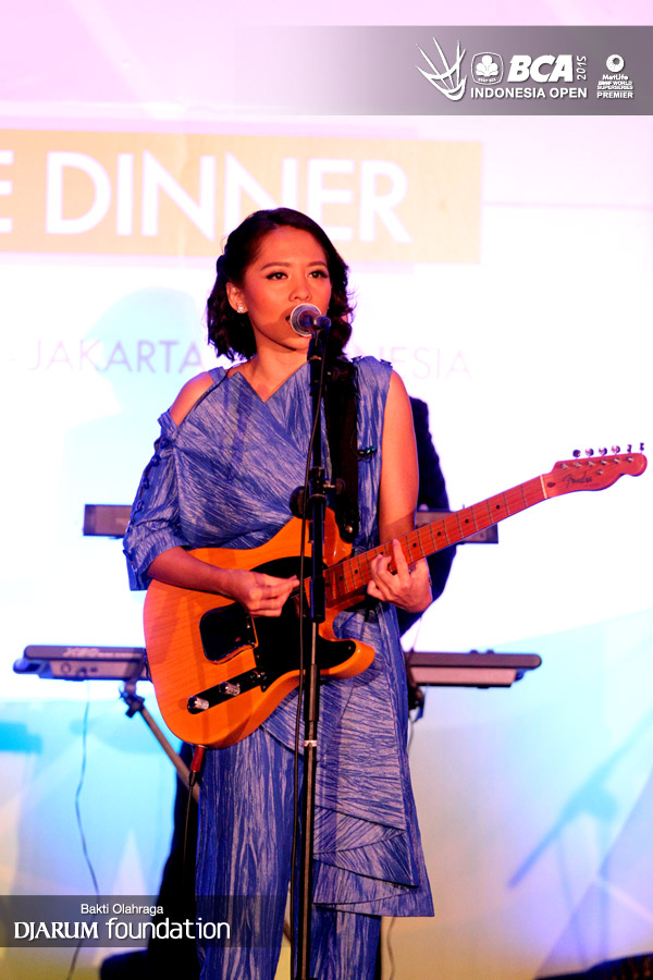 Lala Karmela saat menghibur para tamu undangan di Welcome Dinner BCA Indonesia Open Super Series Premier 2015.