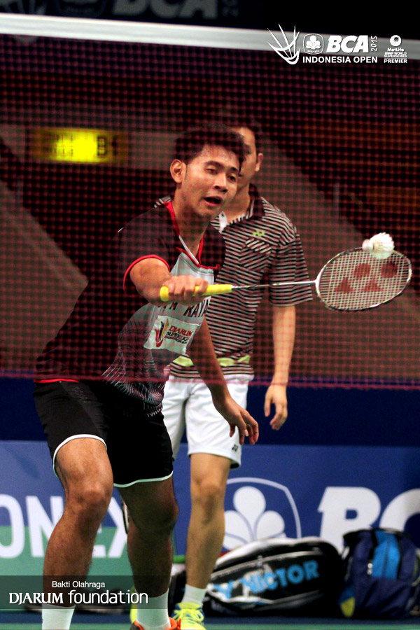 Angga Pratama/Hendra Setiawan (Indonesia) saat berlatih.