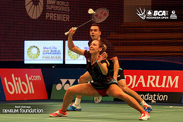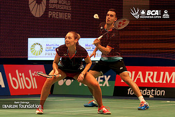 Chris Adcock/Gabrielle Adcock (Inggris) saat berlatih.