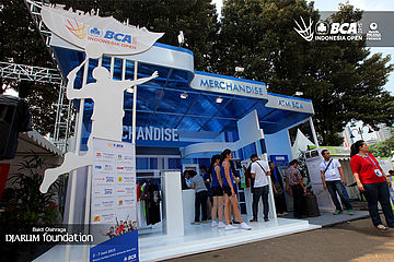 Booth merchandise BCA Indonesia Open mulai ramai didatangi pengunjung.