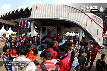 Para pengunjung memenuhi arena games di booth Djarum Foundation.