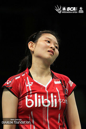 Ekspresi kekecewaan Debby Susanto (Indonesia) saat kehilangan poin.