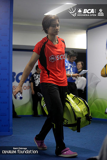 Porntip Buranaprasertsuk (Thailand) menuju player lounge seusai bertanding.