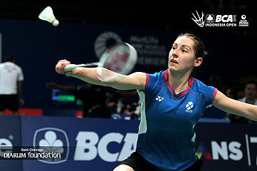 Kirsty Gilmour (Skotlandia) meyambut pengembalian dari Li Xuerui (China).