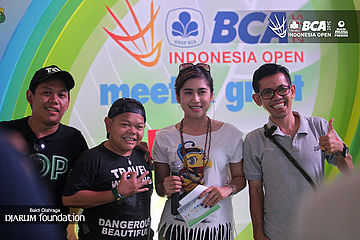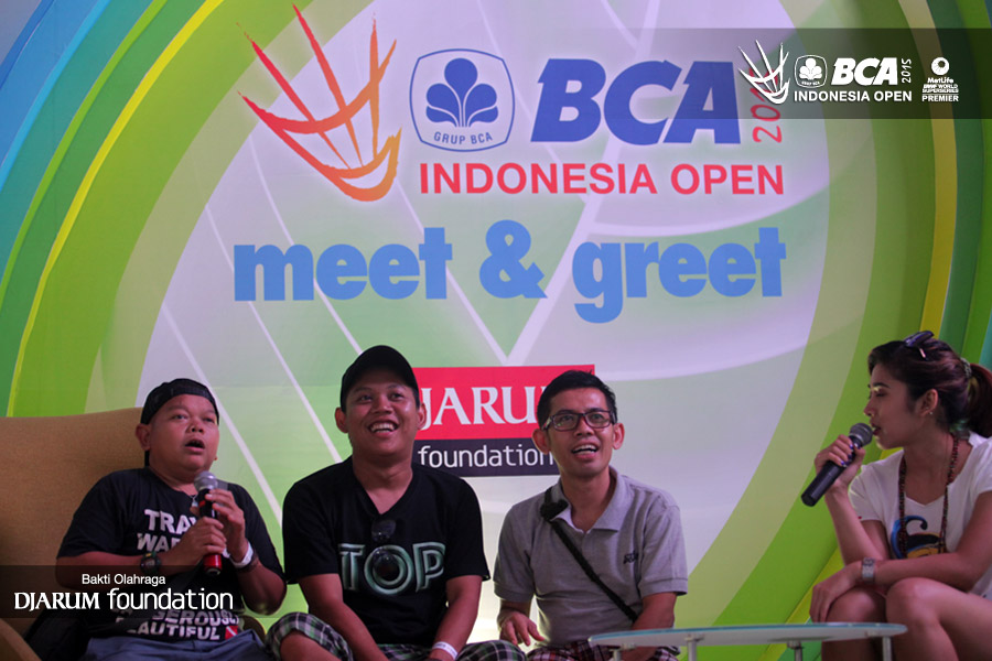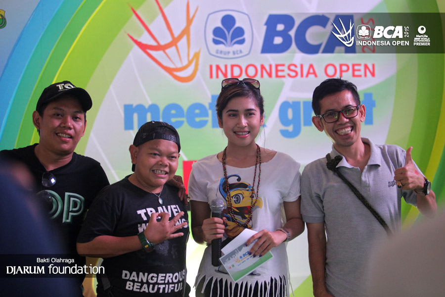 Ony Syahrial, Jawir Smile, Idan Separo (Komunitas Smile) saat acara meet and greet BCA Indonesia Open Super Series Premier 2015.