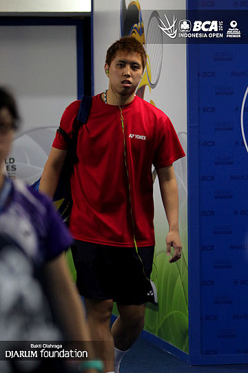 Kenichi Tago (Japan) menuju player lounge sebelum bertanding.