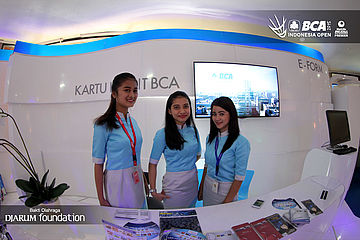 Para usher berpose di booth BCA.